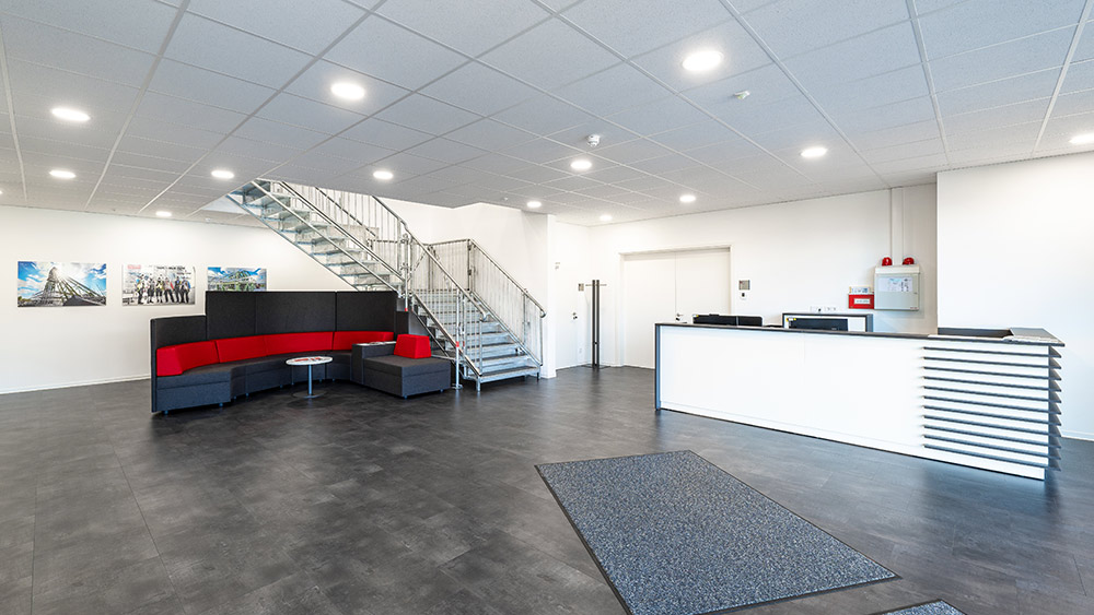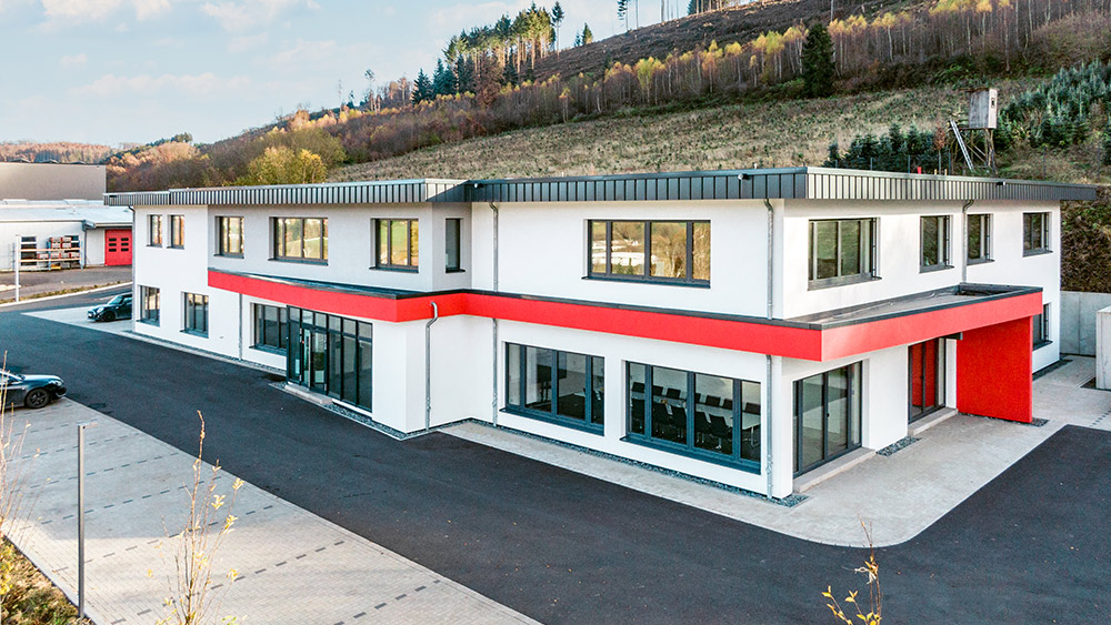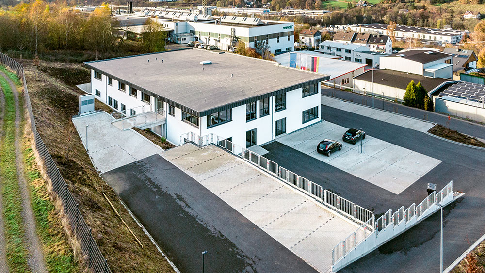 Das moderne Erscheinungsbild mit klarer Architektur und lichtdurchfluteten Arbeitsbereichen unterstreicht die Ausrichtung des Unternehmens auf Nachhaltigkeit und Zukunftssicherheit.